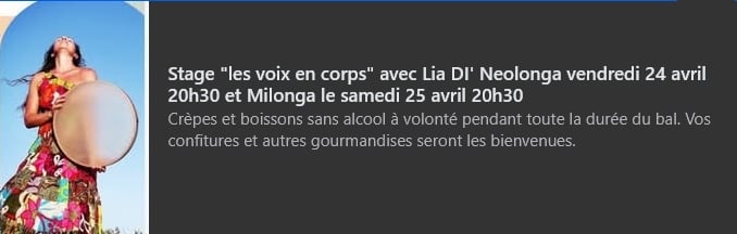 | Voir aussi les 15 milongas régulières proposées | ![]() |