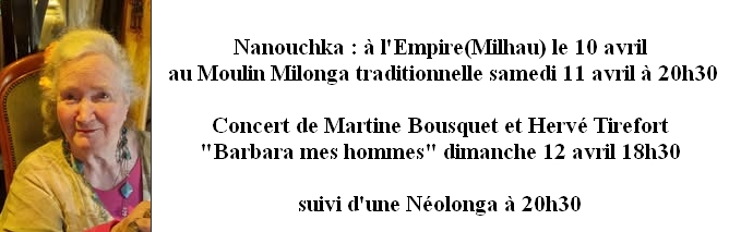 | MILONGA DU MOULIN SOMMIERES CHEZ NANOUCHKA |